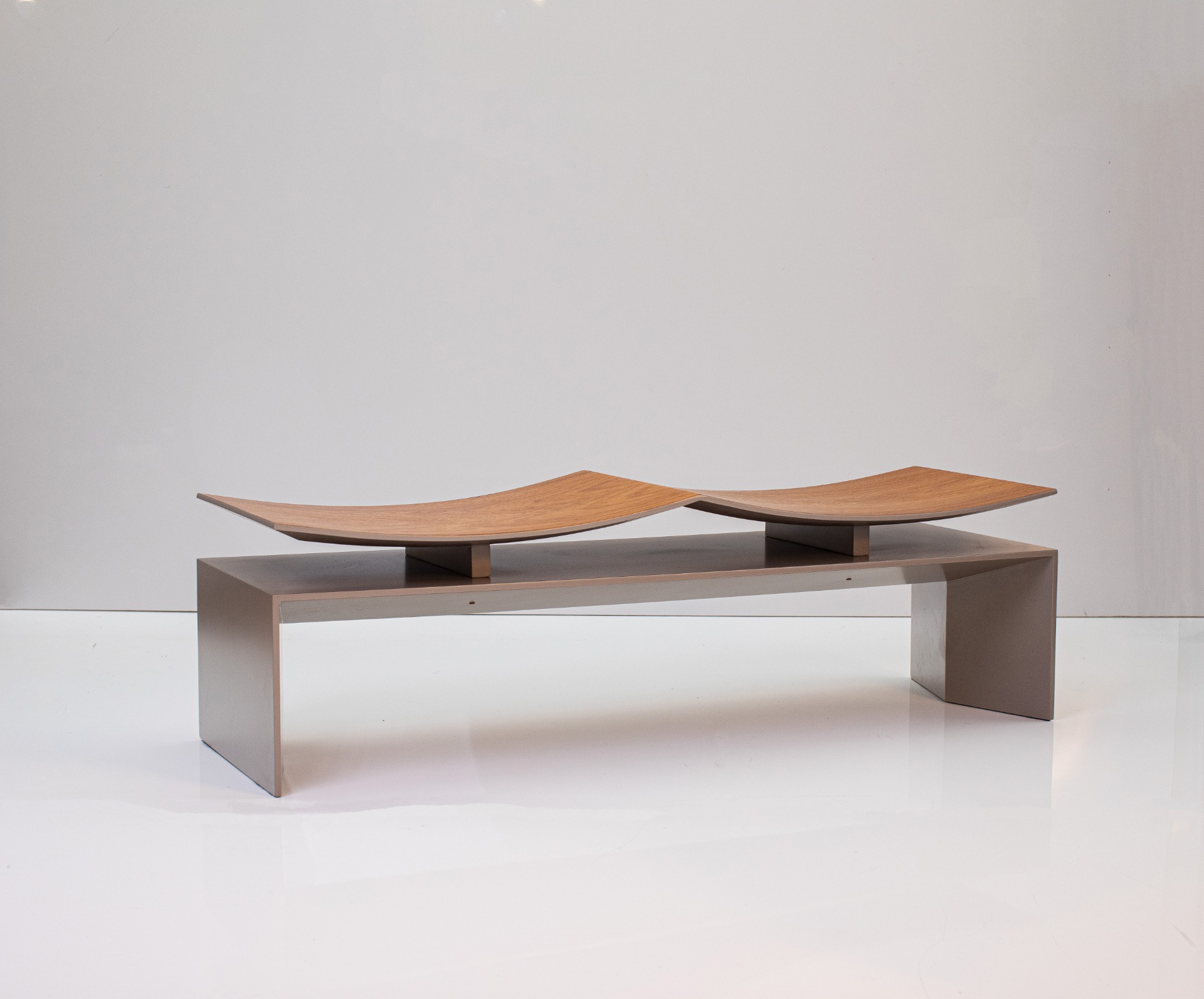 Descrição: Banco confeccionado em MDF com acabamento da estrutura em Off White e revestimento do assento em madeira natural freijó.