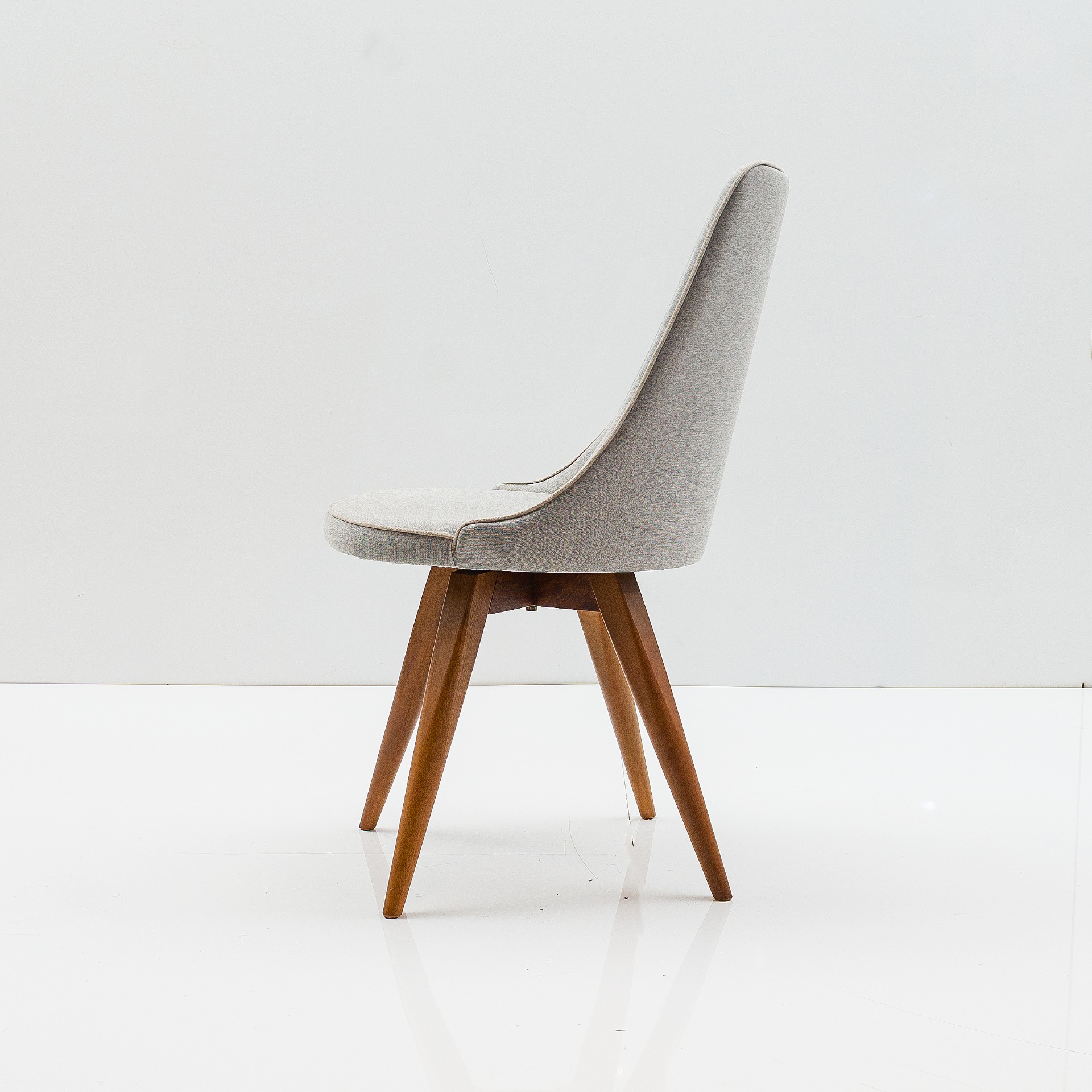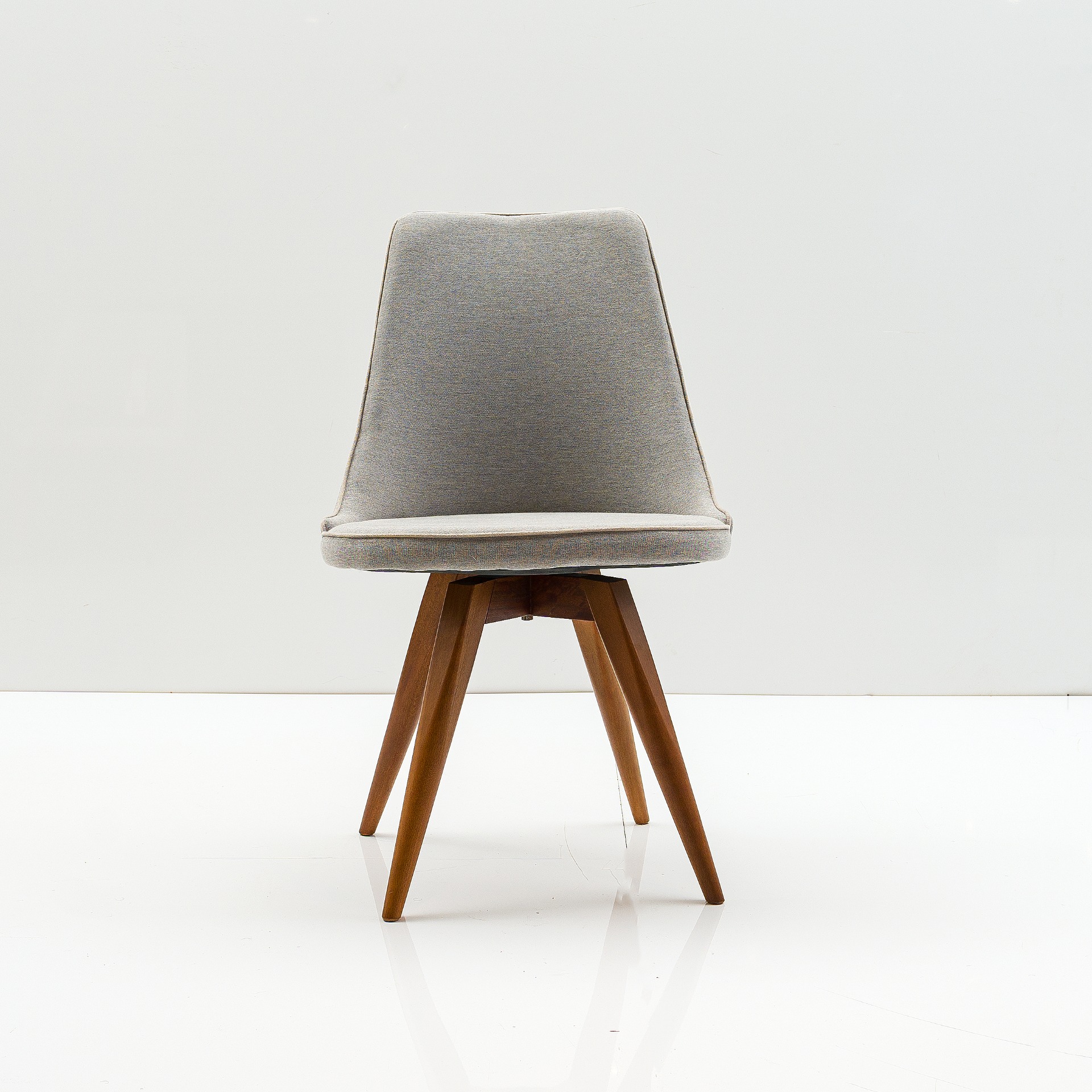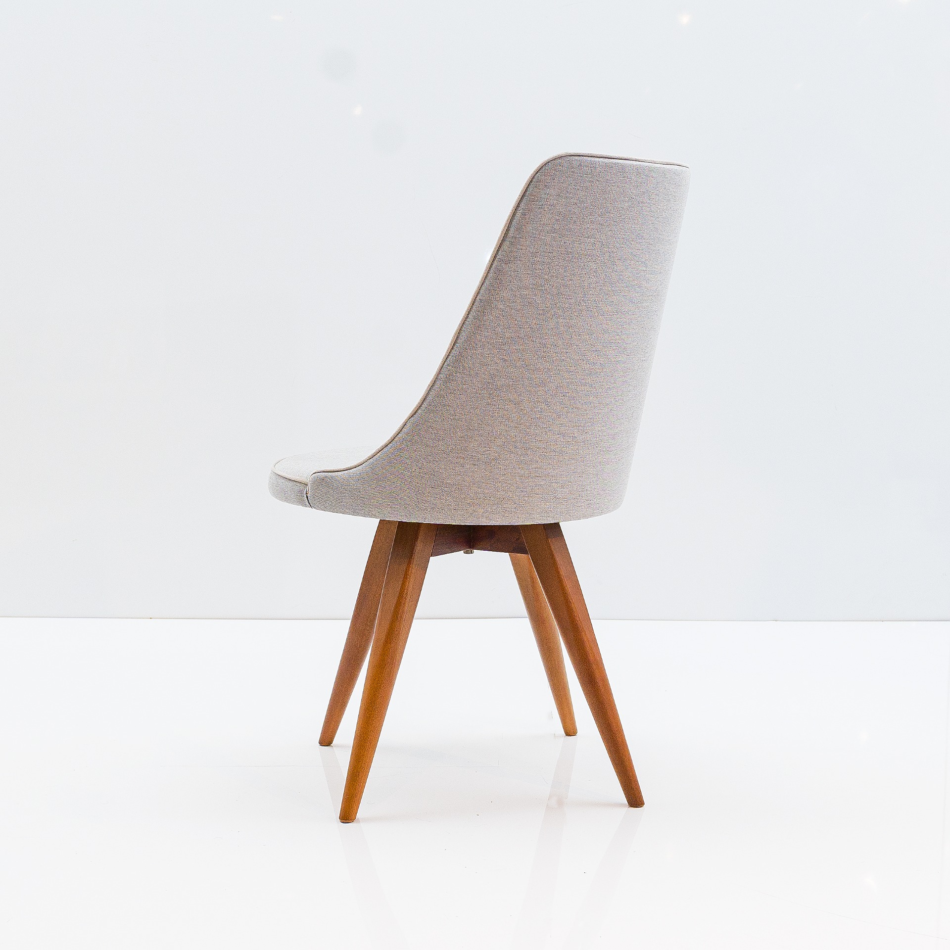 Descrição: Cadeira giratória estofada com pés em madeira amêndoa.