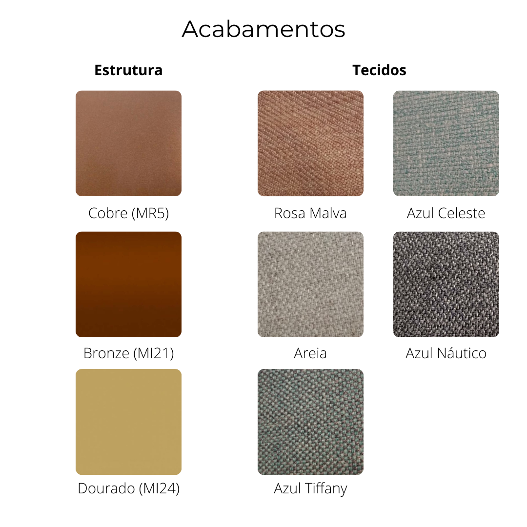 Estrutura: Bronze Ícaro (MI21) | Cobre (MR5) | Dourado Clássico (MI23) (disponível na galeria de fotos).